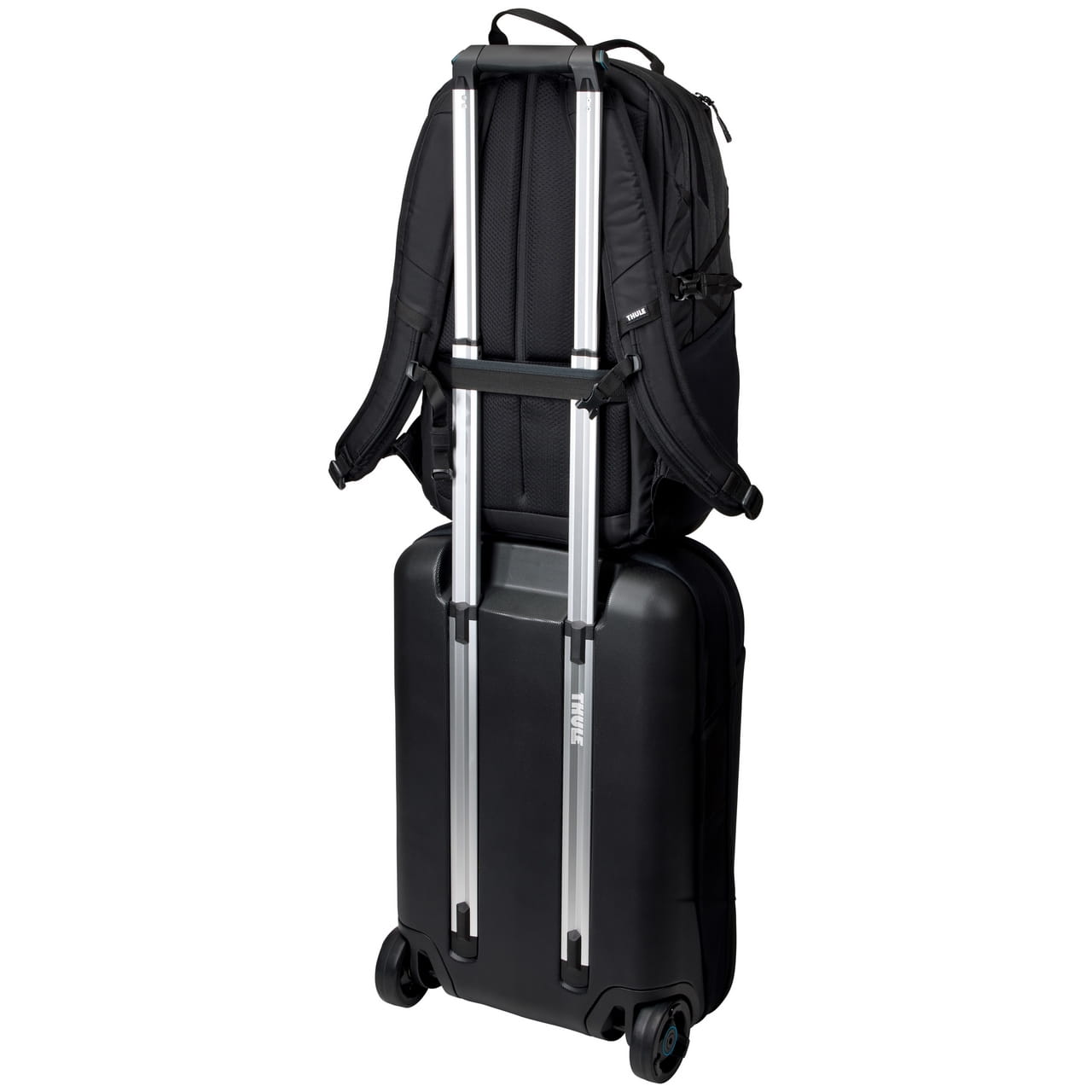 - Przymocowanie przez przewlekany panel bagażowy do torby na kółkach ułatwia podróżowanie