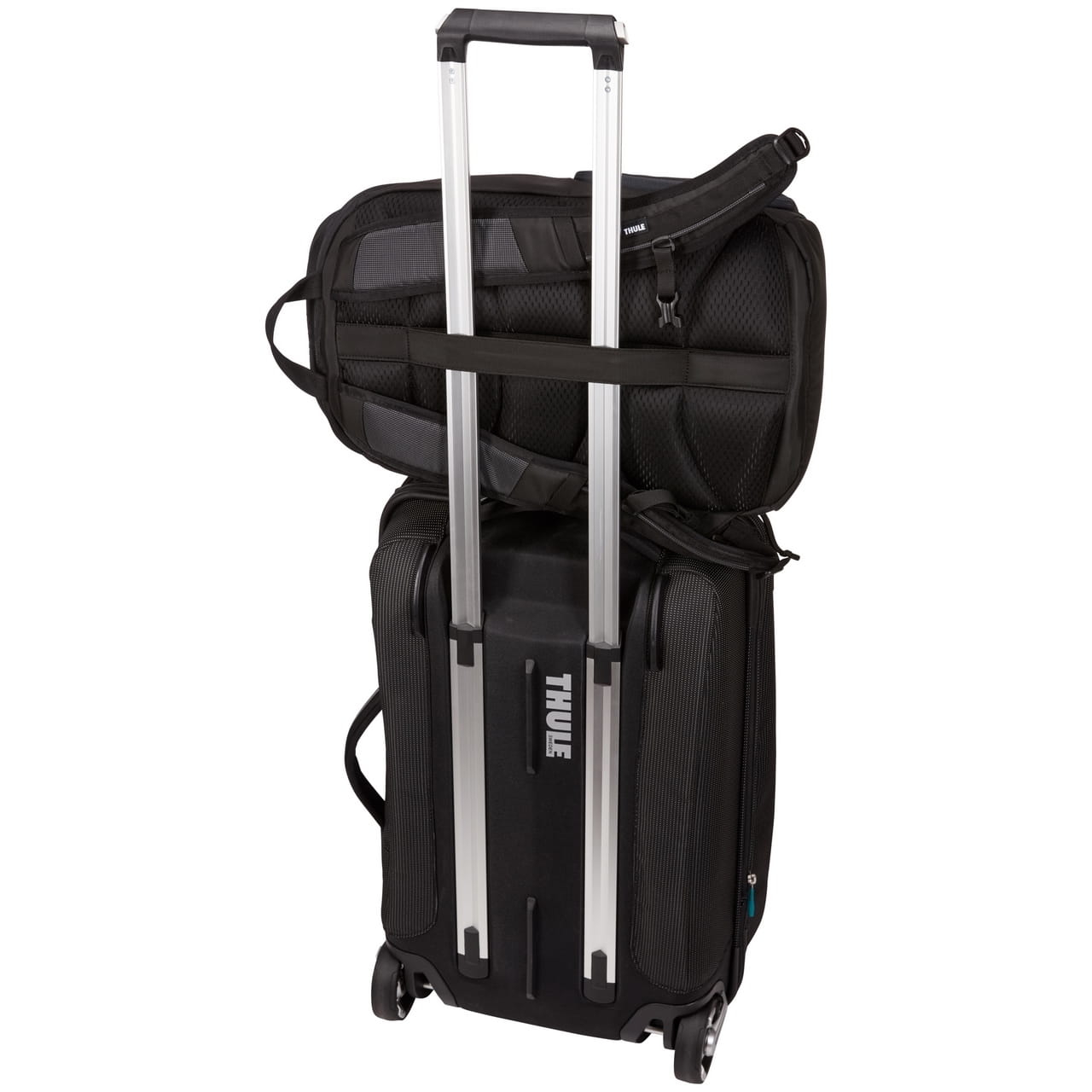 - Panel przelotowy umożliwia przymocowanie torby do bagażu na kółkach w celu ułatwienia podróży